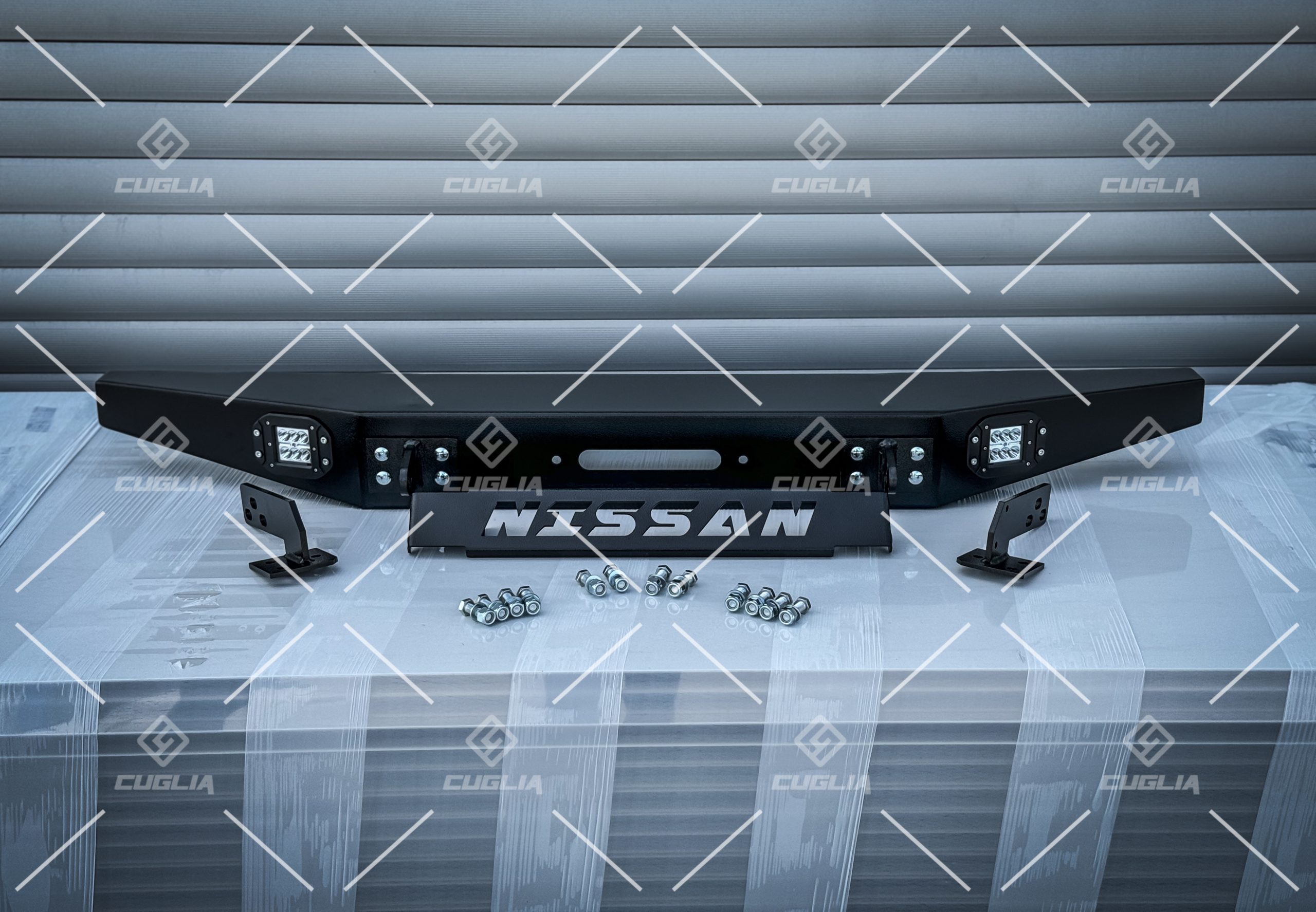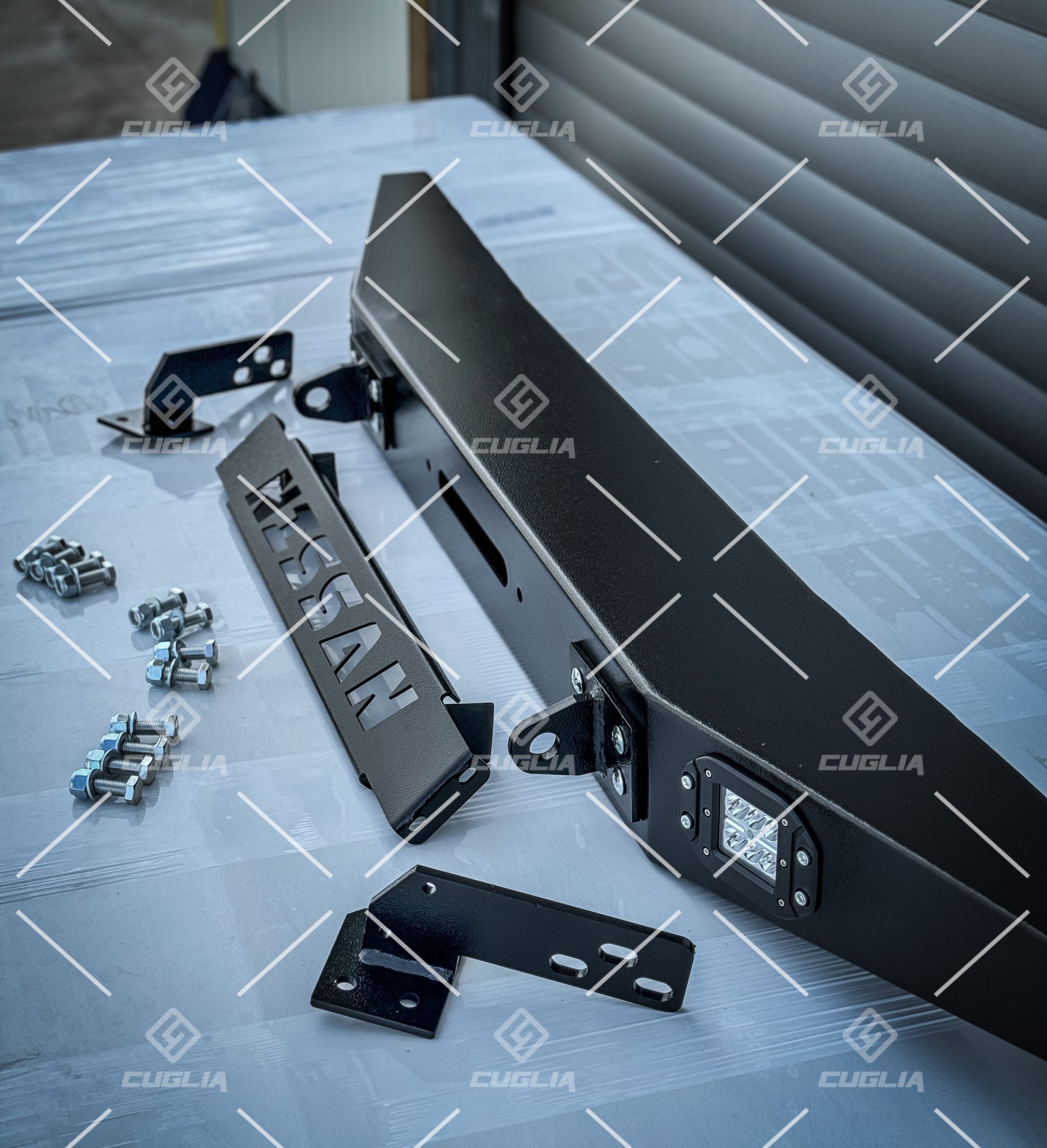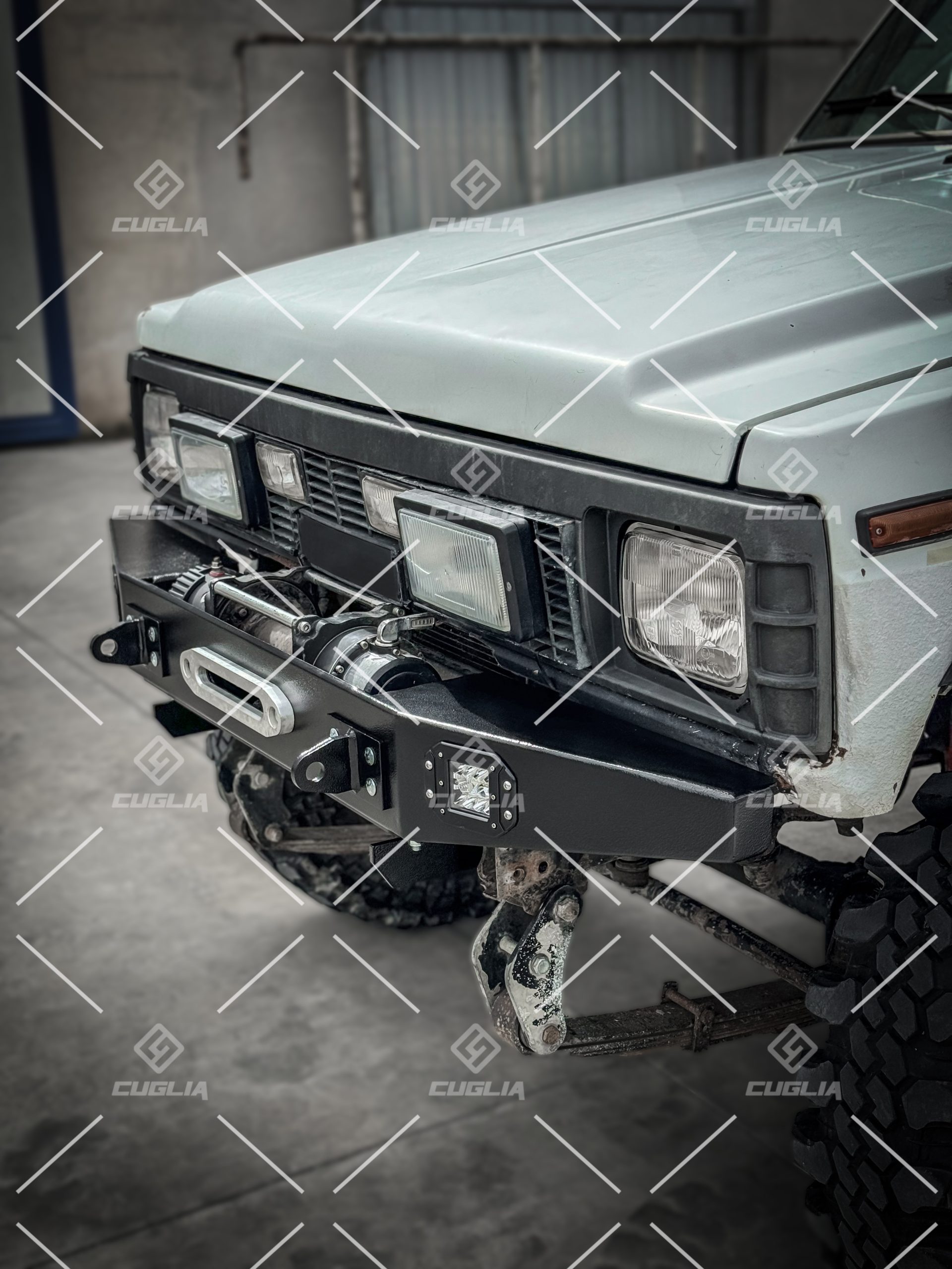 Paraurti anteriore uso gravoso dedicato a Nissan Patrol TR K160/K260, progettato per un utilizzo off-road e gravoso dove solidità e funzionalità sono essenziali. La struttura è pensata per resistere a urti, vibrazioni e condizioni difficili, offrendo punti di ancoraggio affidabili e componenti utili per l’uso in fuoristrada.