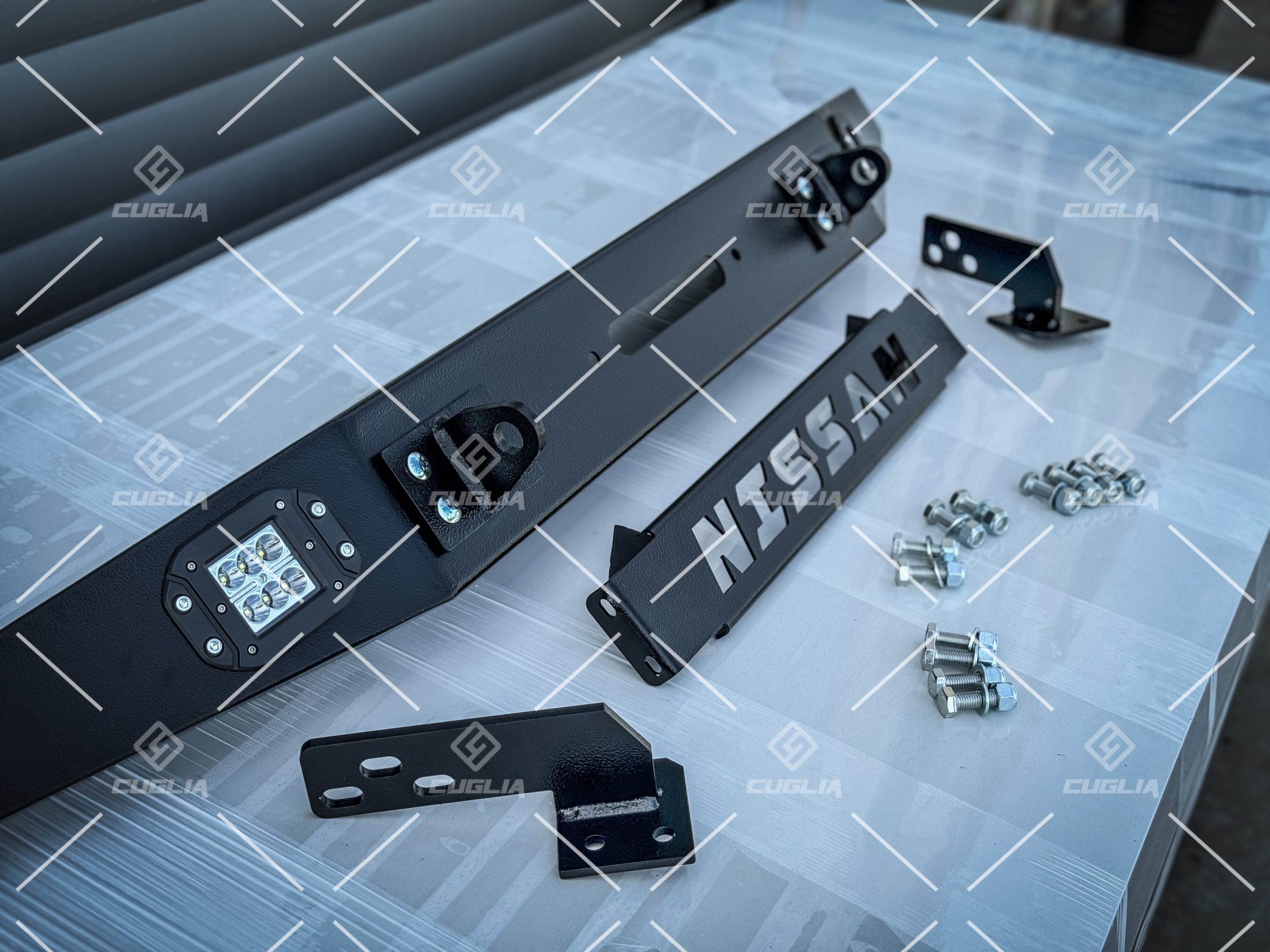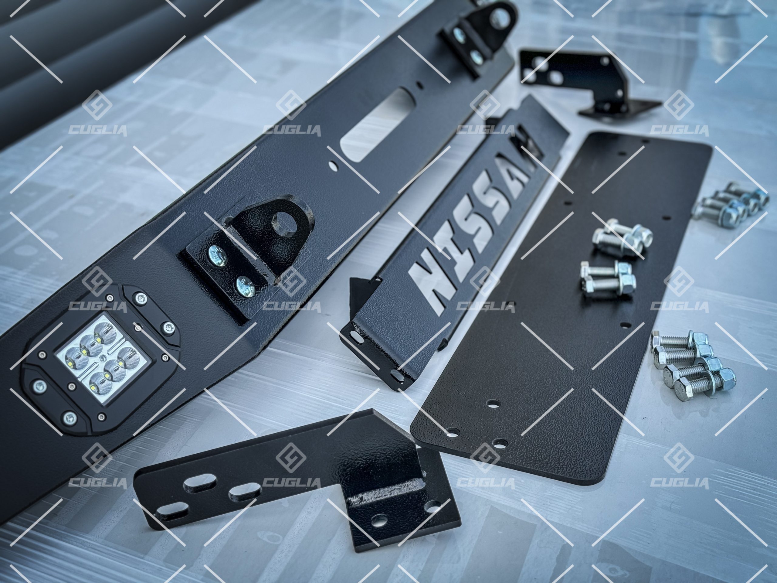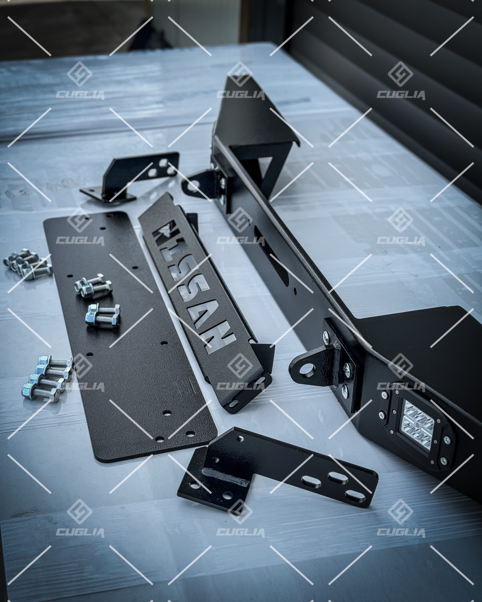 Paraurti anteriore uso gravoso dedicato a Nissan Patrol TR K160/K260, progettato per un utilizzo off-road e gravoso dove solidità e funzionalità sono essenziali. La struttura è pensata per resistere a urti, vibrazioni e condizioni difficili, offrendo punti di ancoraggio affidabili e componenti utili per l’uso in fuoristrada.