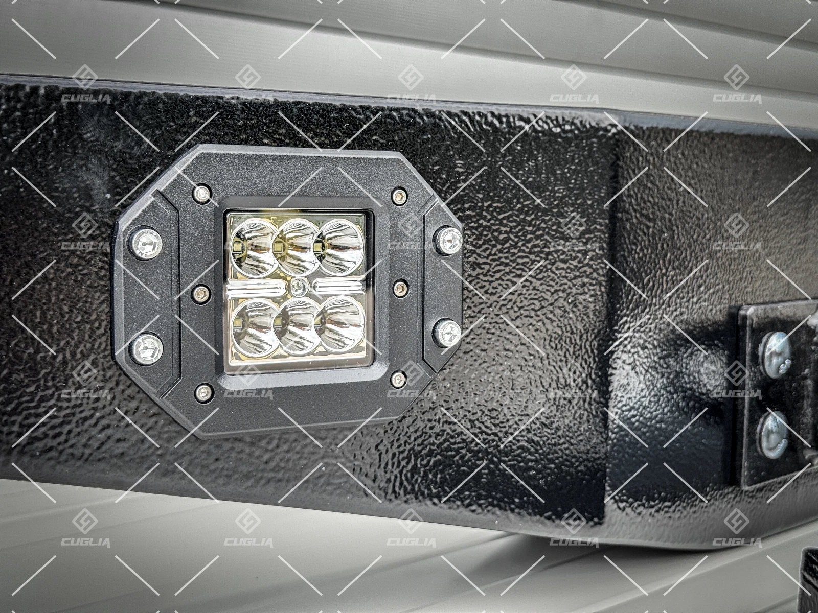 Il prodotto è predisposto per l’installazione del verricello, grazie a un sistema di staffe e piastra di fissaggio incluso nel kit. L’illuminazione integrata è garantita da faretti LED ad incasso da 42W, perfetti per garantire visibilità e sicurezza durante le uscite notturne o in condizioni di scarsa illuminazione.