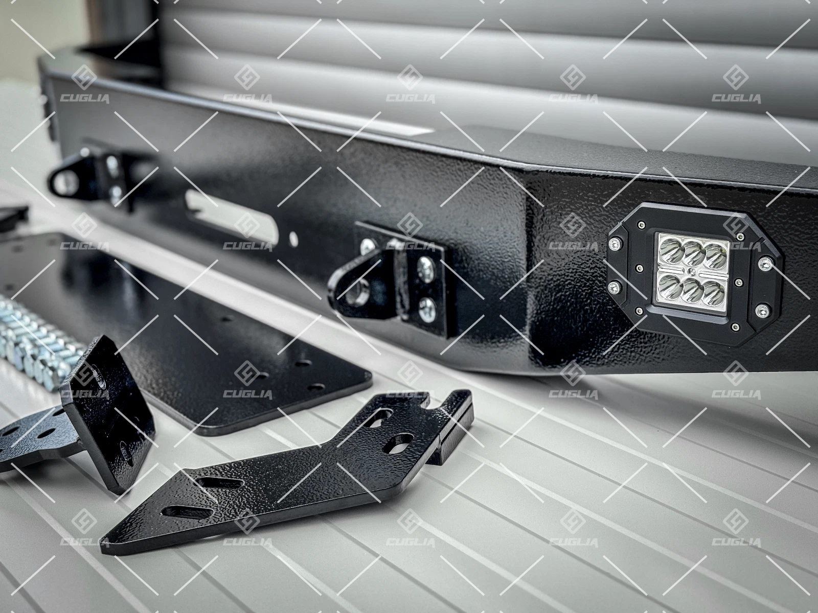 Realizzato con materiali di alta qualità e rifinito con una verniciatura a polvere epossidica in colore nero, questo paraurti offre una protezione superiore e una lunga durata nel tempo, anche negli ambienti più difficili.