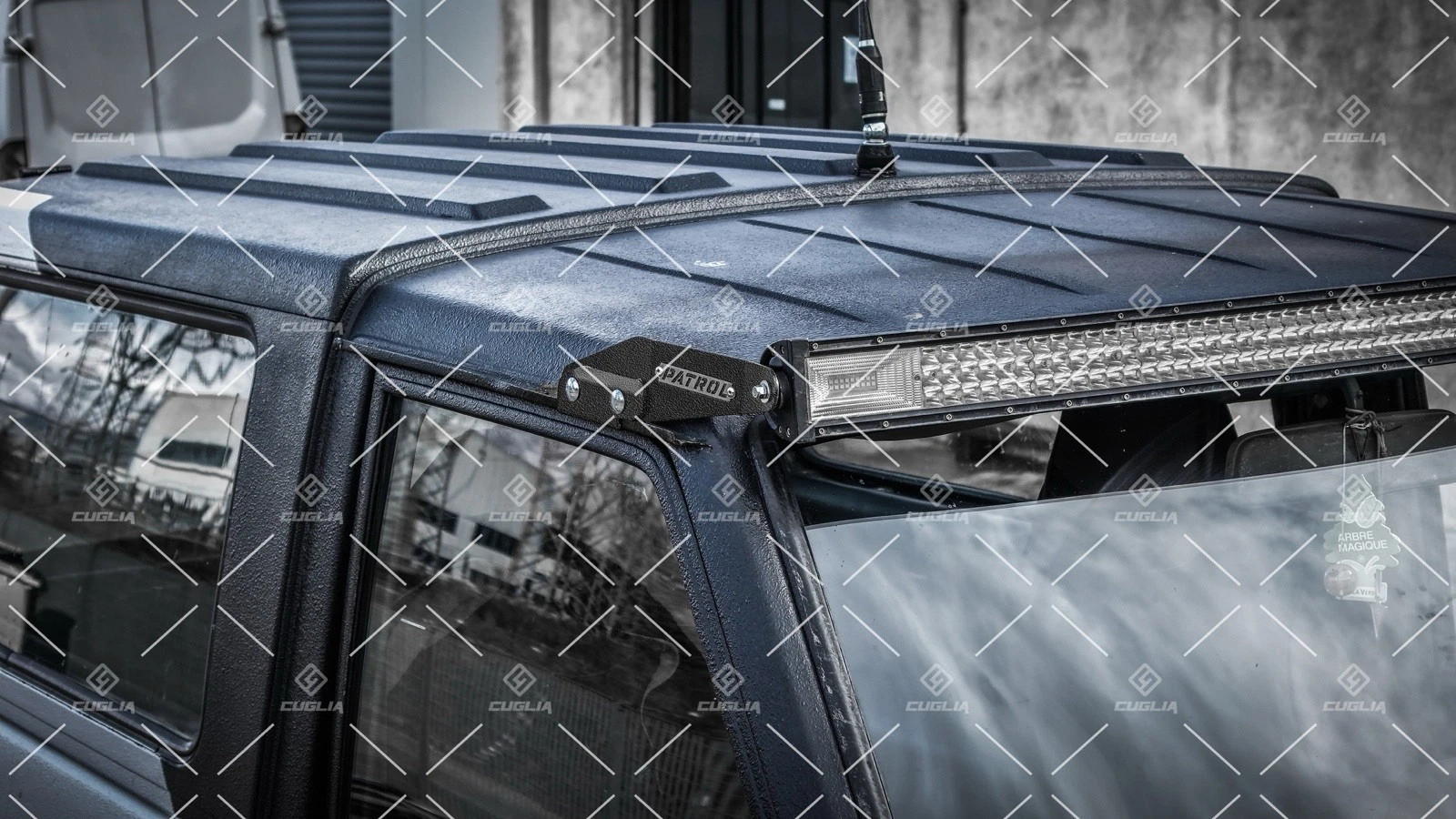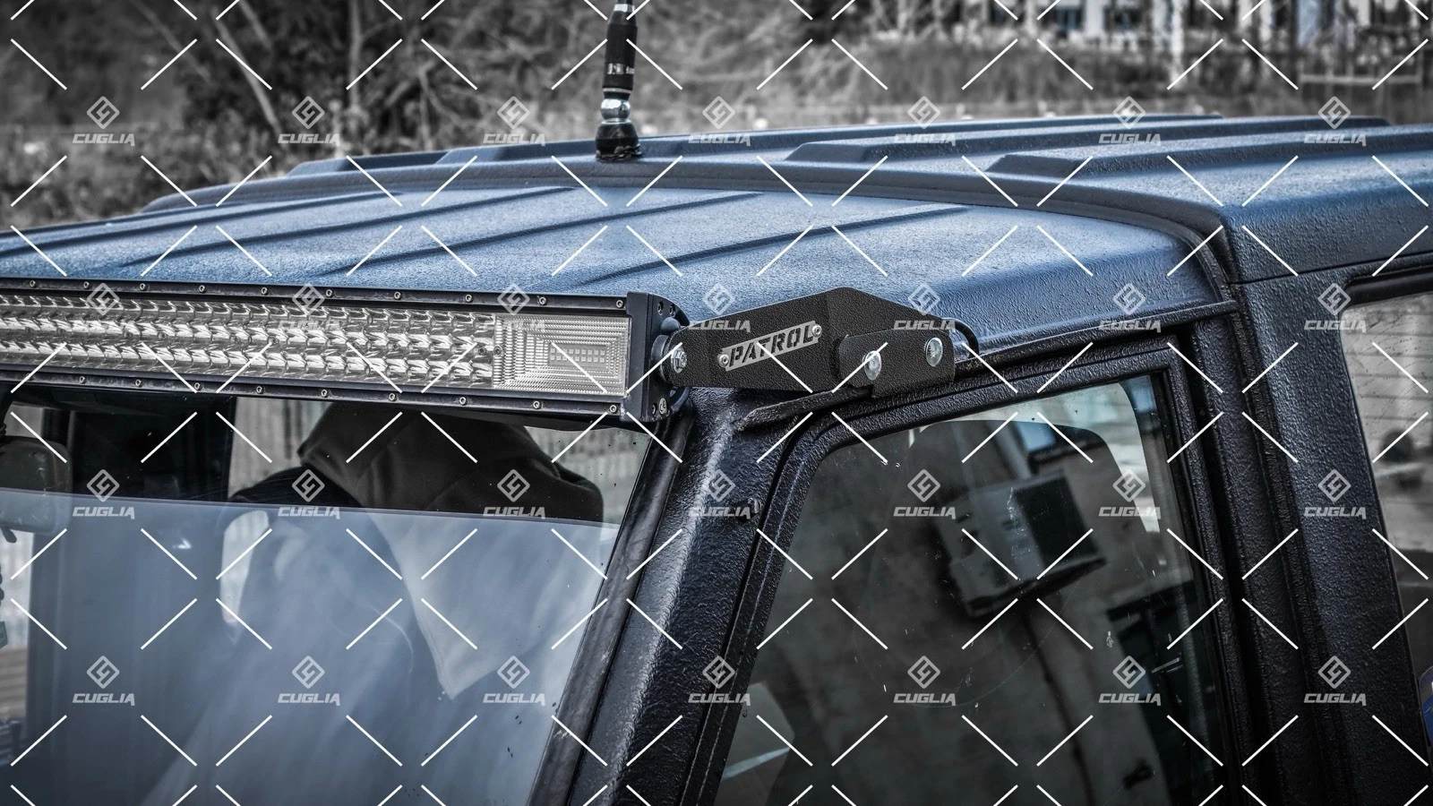 Kit di staffe per installare una barra LED da 50” su Nissan Patrol TR/GR Y60 e Y61, con fissaggio sulle canaline superiori originali senza forare la carrozzeria. Soluzione robusta, pulita e reversibile, ideale per uso off-road.