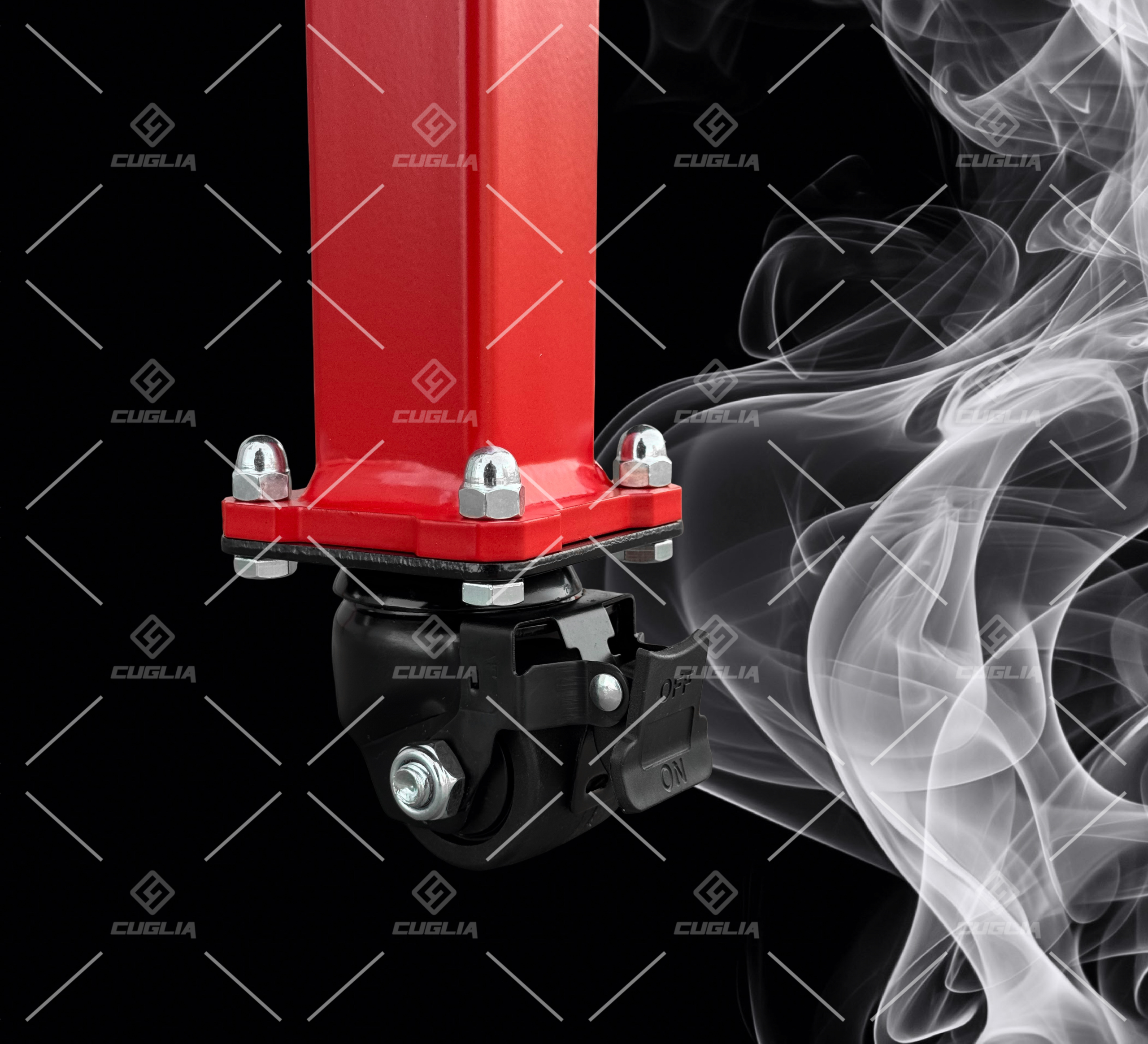 • Ruote girevoli in Nylon da 50mm con freno.